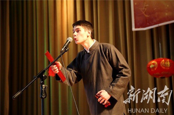 曾子儒是乌克兰基辅国立语言大学孔子学院学员,学汉语四年了。说起他的兴趣爱好,可能很多人都想不到,那就是打快板和说相声。“我们学校有很多中国留学生,其中有个朋友特别喜欢打快板,我觉得很有趣就跟着学,他算是我师傅。不过我算新手,才学四个多月而已。”虽然学的时间不长,但他在本届“汉语桥”世界大学生中文比赛乌克兰赛区预赛中,就表演了原创快板《学说中国话》,获得了一等奖呢!