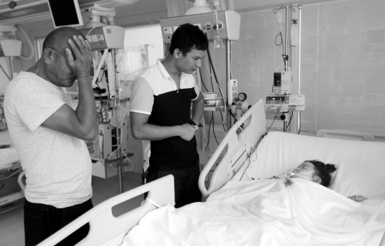 病房内,小西妹躺在床上,身上插满了各种管子,一旁的仪器嘀嘀作响。病房外,疲惫的父母担心着女儿的安危。