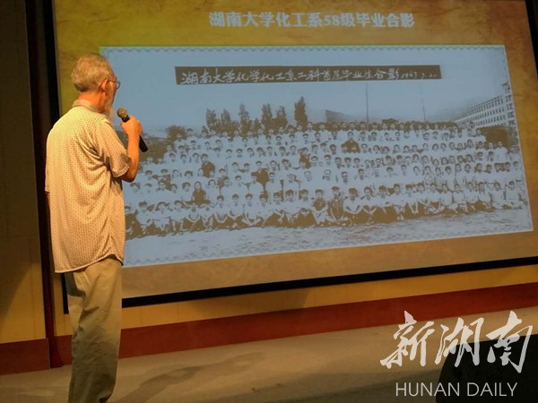 一张老照片,承载了多少回忆……沈老今年77岁,是湖南大学化工系首届校友~他上台介绍了化工系首届老校友的情况,逐一对不同阶段同学聚会合影、班级同学情况进行了介绍,流露出对母校深深的感怀~