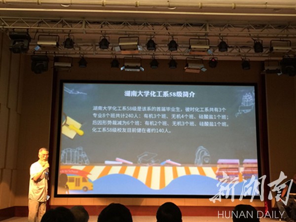 湖大化工系58级是该系首届毕业生,彼时化工系共有3个专业8个班共计240人。化工系58级校友目前健在者约140人。