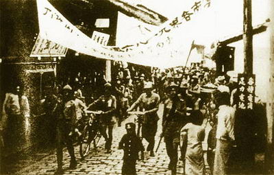 1931年9月23日,省会长沙获悉日军侵占沈阳的消息后,即有200多个学生、教师、工人宣传队走上街头,宣讲“九一八”事变真相。