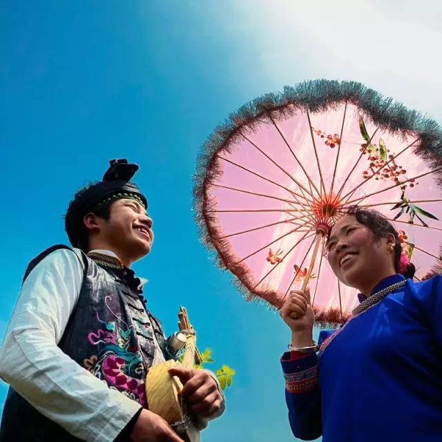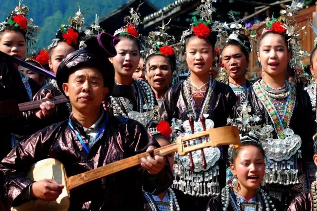 靓丽的侗妹多情的哥,侗族生来爱唱歌。阿妹巧手织锦绣,阿哥芦笙对天歌。千人唱来万人和,缠缠绵绵到心窝。