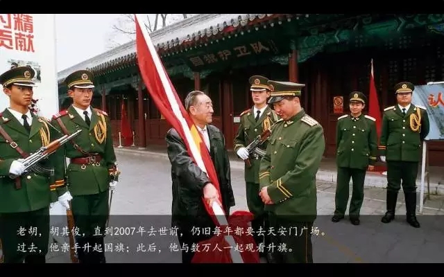 而老胡,直到2007年去世前,仍旧每年都要去天安门广场。过去,他亲手升起国旗。此后,他与数万人一起观看升旗。
