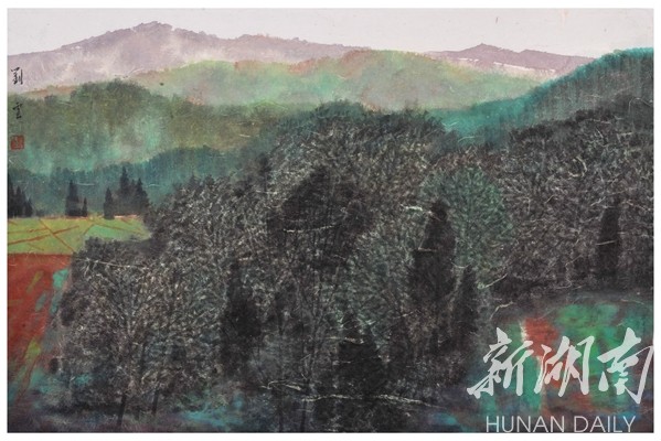 【邹立颖】 我认为刘云的画最大的长项是利用生活。他的画单纯,元素不多,山石树木,他的画面不是在照物而是在写心。他画山画树,色彩平面、干净,画面不显乱。他的所有作品四个角没有重复。他的作品对我的启发很大,也对当下山水画如何向前发展、向前推进,起到一定的引领作用。
