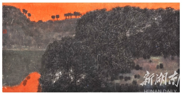 他的画会让人停留下来,会产生一种凝视感。他的画面靠气息驱动,无论是用笔还是用墨有一种厚重感、朦胧感,有一种是沉积和穿透的气息。