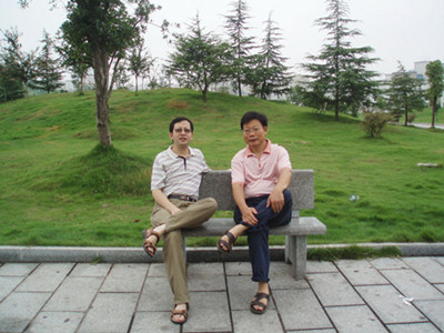 (2008年8月28日,甘建华(左)与罗玉成教授在南华大学留影。照片由作者提供)