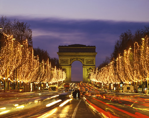 从协和广场出来,便上了香榭丽舍大道。为了看得更真切一些,我坐到了司机身旁的座位上,顿觉视野开阔多了。这是一条横贯巴黎的东西主干道,始建于一六一六年,由当时的皇后玛丽·德·梅德西斯主张修建,曾一度被称为“皇后林荫大道”,全长二点五公里,有两道八线行车的大马路,东起协和广场,西至戴高乐广场,即星形广场。权力,为什么一直以来让人顶礼膜拜?甚至让人不惜一切代价地去谋取它?好处就是能够按自己的愿望,做成自己想做的事情。这条大道,就是皇后以她的特权建成的。大道中段以自然风光为主,你从车窗往外看,只见两侧是绿色草坪,树木葱茏,恬静安宁;西段是高级商业区,有酒店、餐馆、咖啡馆、剧院、电影院、银行等,多是十九世纪的建筑,高低不一,错落有致。那奇形怪状的各式灯具,那斑斓招摇的各式广告,为这条大街平添了巴黎特有的浪漫气息。地接游赵亮来巴黎定居好多年了,他说,这里有世界一流的时装店和香水店,只是价格高得离谱。看着那些气派典雅的橱窗,估计眼下仍然是上流社会中大腕名流的去处。