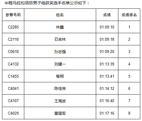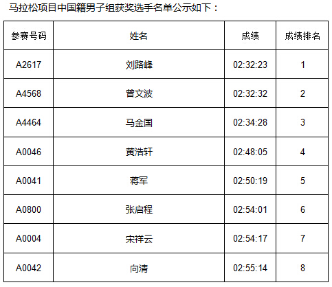 1、华融湘江银行2016长沙国际马拉松赛成绩公示: