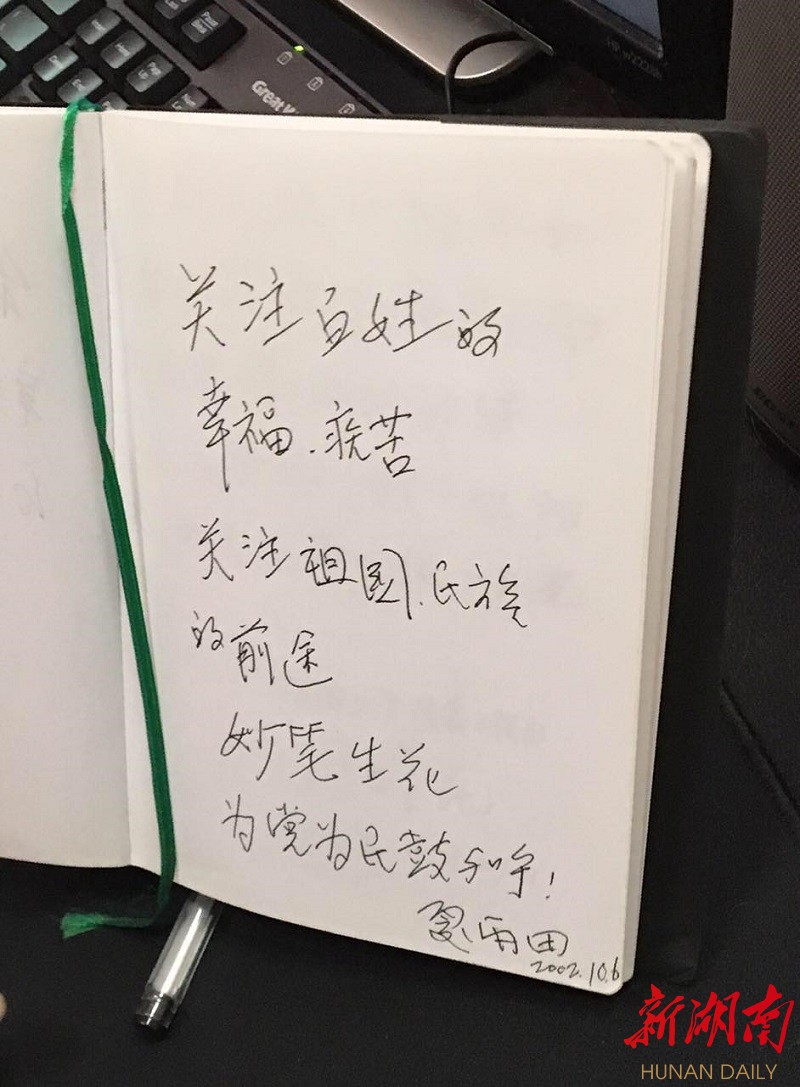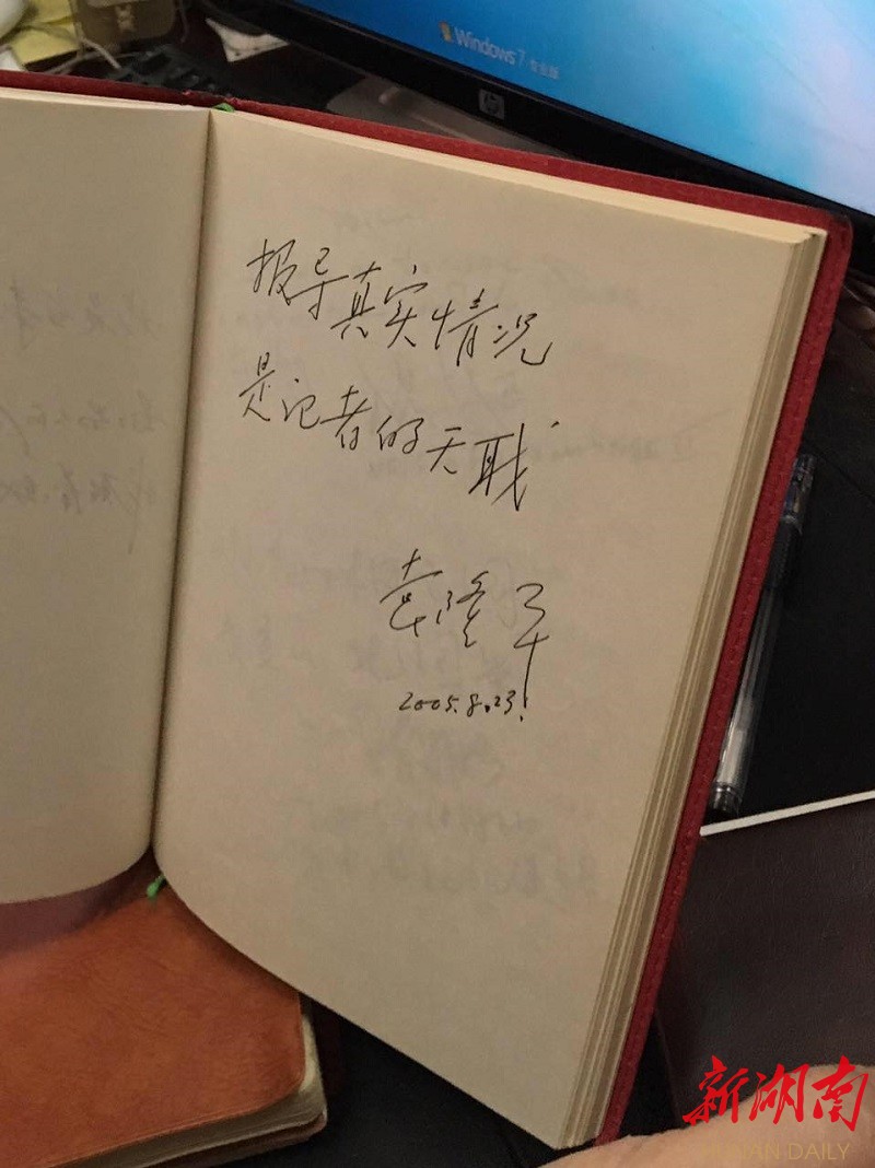 “我很庆幸,当记者30多年,我没有变‘油’,每一次报道我都能充满激情和新鲜感。”唐湘岳说,他时常翻开他的那些留言本细细品读,那里面的每一句留言,都是他坚持初心的力量。