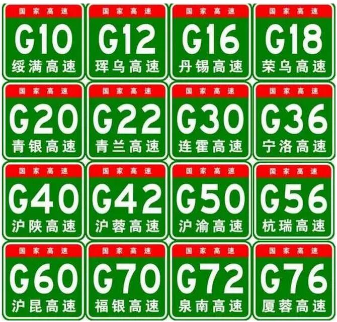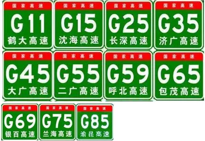 其次,G字母是国字头,编号由G+阿拉伯数字组成,G+1位数是首都放射线,G+2位奇数是纵线,G+2位偶数是横线。