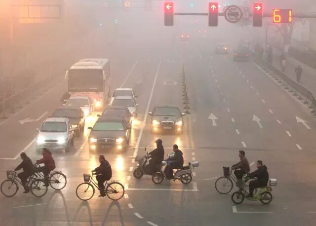 2006年12月26日早,南京市民在大雾中行进。据该年中央气象台25日发布的气象预报称,26日中国中东部大部地区仍有雾和霾,27日大部地区的雾霾将消散。