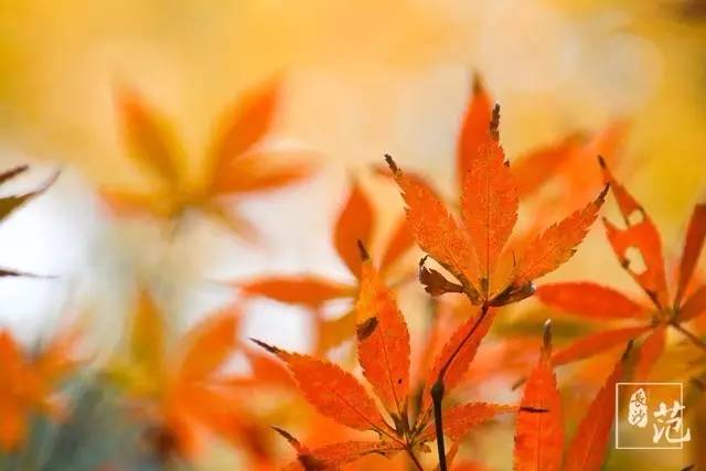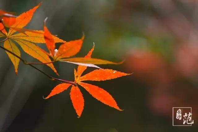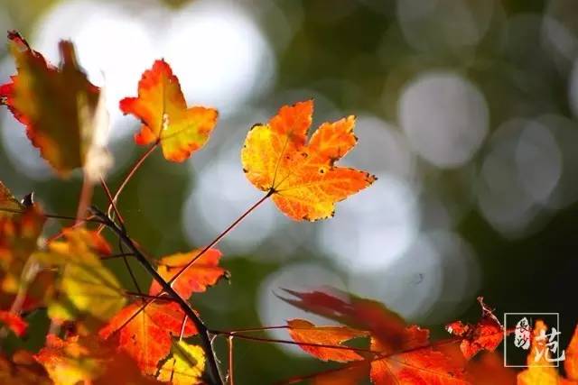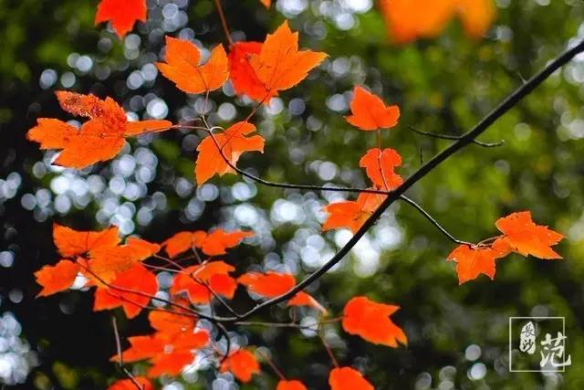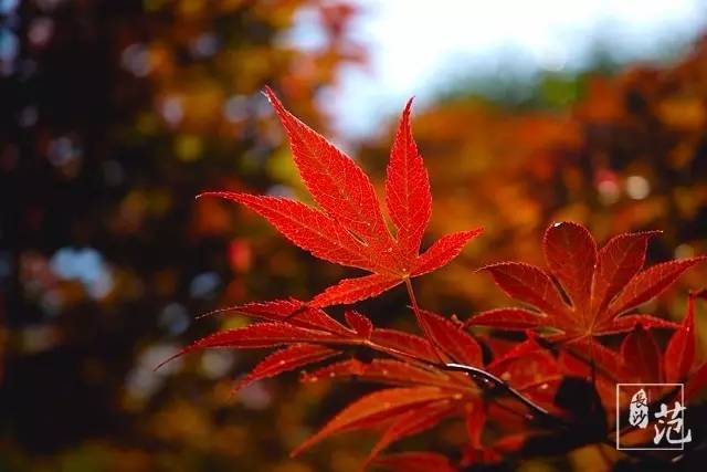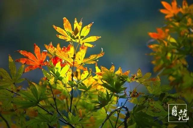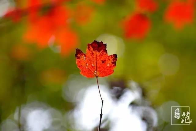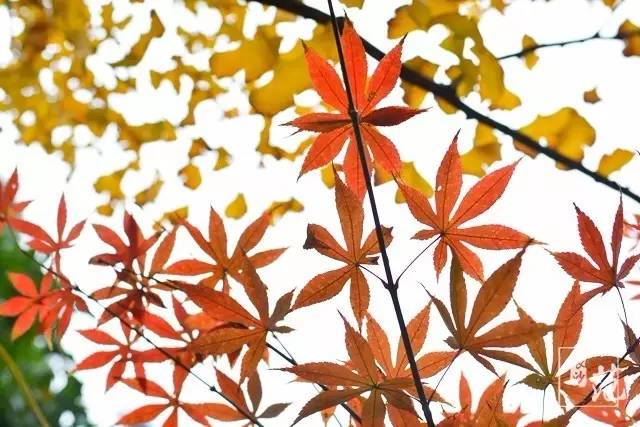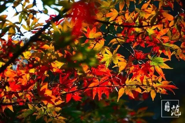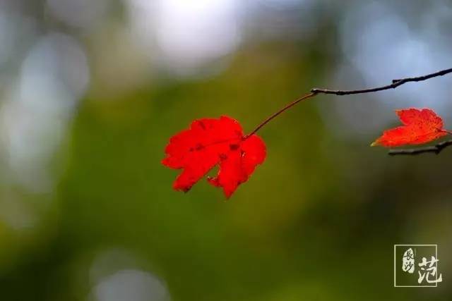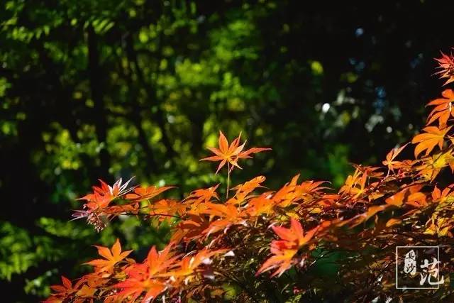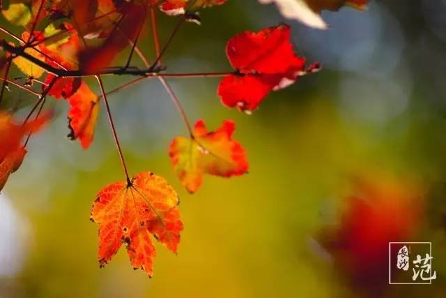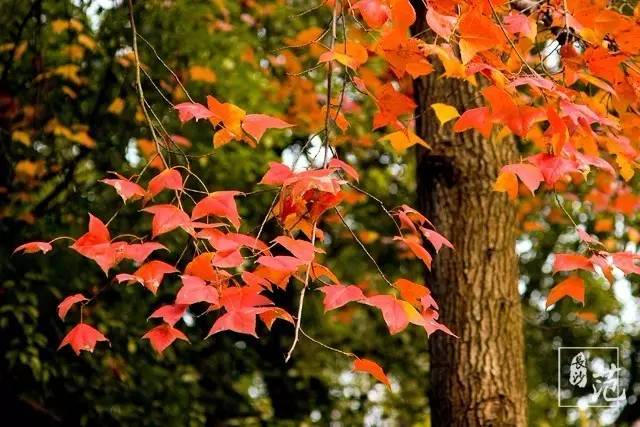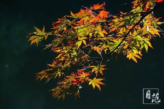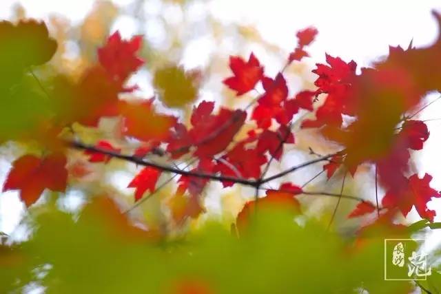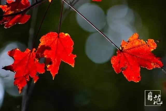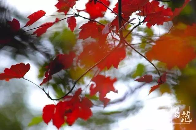 ■ 红叶散生在常绿林中,高大挺拔,如旌旗飘扬;纤细娟秀,撕鲜花般柔情;灿若云霞,宛如淋不灭的火焰,在燃烧着,在跃动着,在旋舞着,明亮得甚至晃眼。