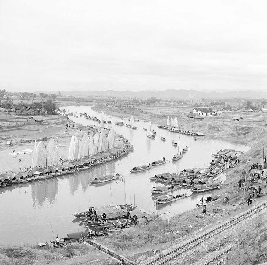 1976年,浏阳河上密集的交通运输帆船在运送矿石,支援农业生产。黎善绍 摄