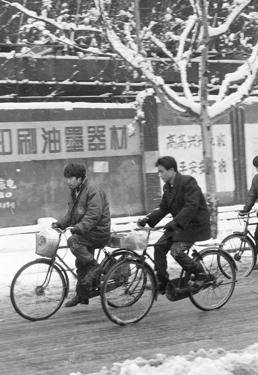 1995年1月1日,长沙元旦,风雪阻不住的人们。湖南日报记者 刘建光 摄