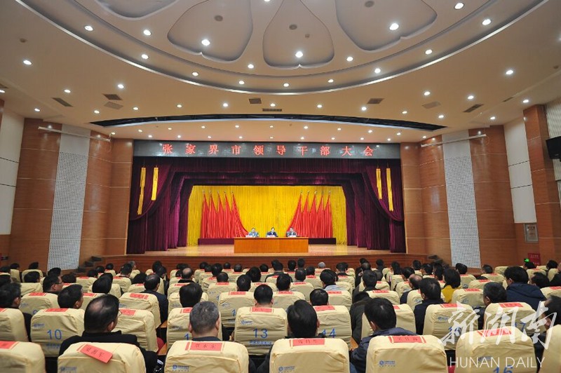 新湖南12月10日讯 (记者 廖声田 摄影 邵颖)12月10日,张家界市召开全市领导干部大会,省委组织部副部长庄超宣布省委任职决定:虢正贵任张家界市委书记。