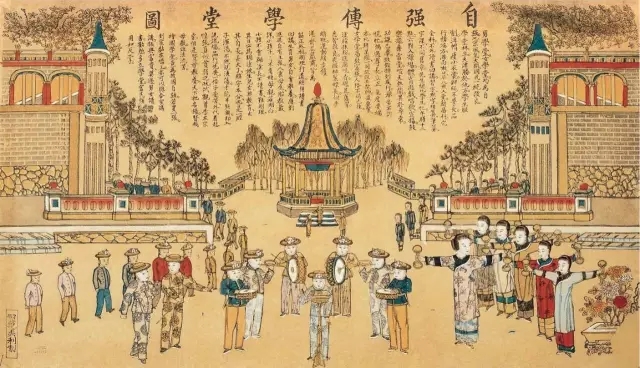 这是一幅致力于发扬社会新风的年画。清末民初,社会改良之风圣像,主要提倡女子受教育、健身强国、开阔眼界、博知广闻。画中的新式建筑、时装、洋鼓和炎陵,都是当时崭新的事物。