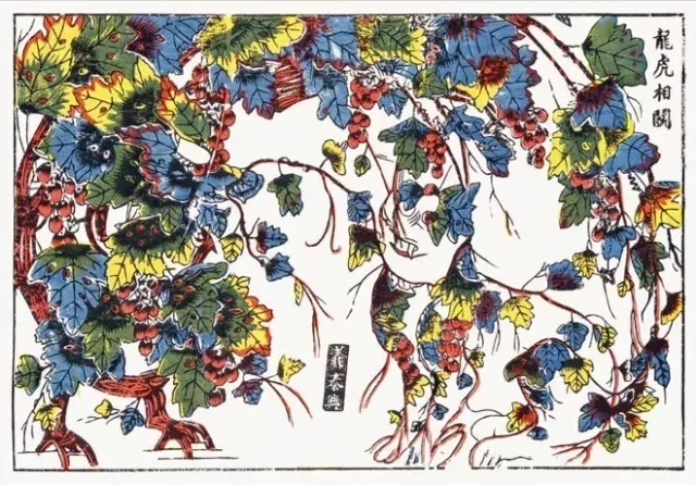 这幅画由两株葡萄组成,其中还隐藏了一龙一虎,