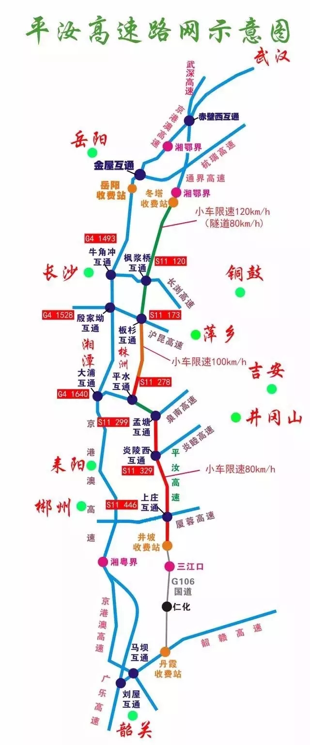 平汝高速湖南境内全线贯通,且与湖北境内的武深高速已对接,同时分别于厦蓉高速、炎睦高速、泉南高速、沪昆高速、长浏高速、杭瑞高速有互通,可以去往衡阳、湘潭、株洲、长沙、岳阳、江西吉安、江西萍乡、湖北咸宁、湖北武汉等地!具体怎么走?别着急,慢慢往下看!