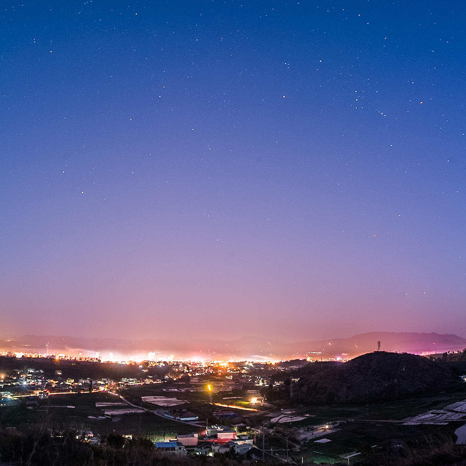 1月27日,四川省会理县,华灯格外明亮,异乡游子回家了,万家灯火,繁星渐明,猎户座三星高照,又一个吉祥幸福的中国年。摄影:翁锐。