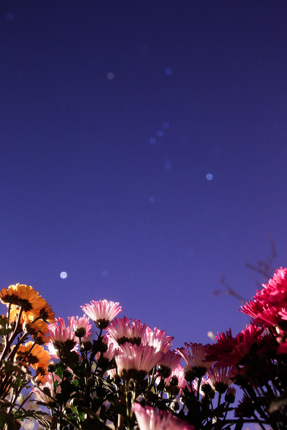 1月23日,春节逛花市是广东的传统特色,摄影师拍摄到鲜花上空的三星。摄影:罗震宇。