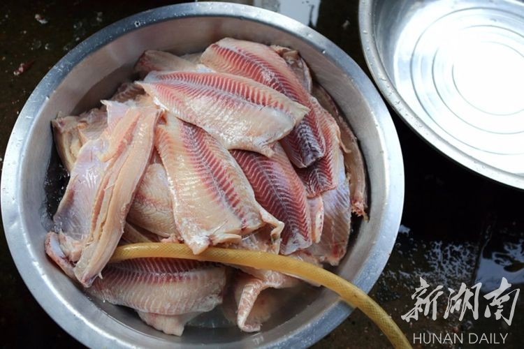 之后把剖开的草鱼去掉头尾、骨刺,再剥下鱼皮,放在清水中浸泡。