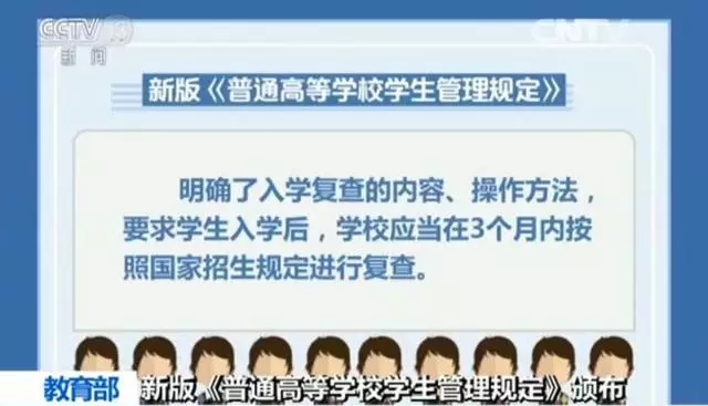 • 教育部近日颁布了新修订的《普通高等学校学生管理规定》,《规定》涉及学生的权利与义务、学籍管理、奖励与处分等诸多方面,将于今年9月1日起施行。