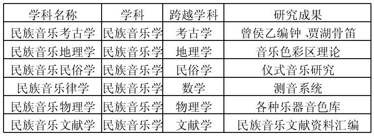 表2中国民族音乐学跨学科研究一览表