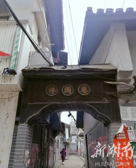 (梓园巷,其名源于清乾嘉间礼部尚书刘权之宅第的后花园“梓园”,是长沙城保存最好的四合院之一,今保留有一处民国旅馆及戏台。)