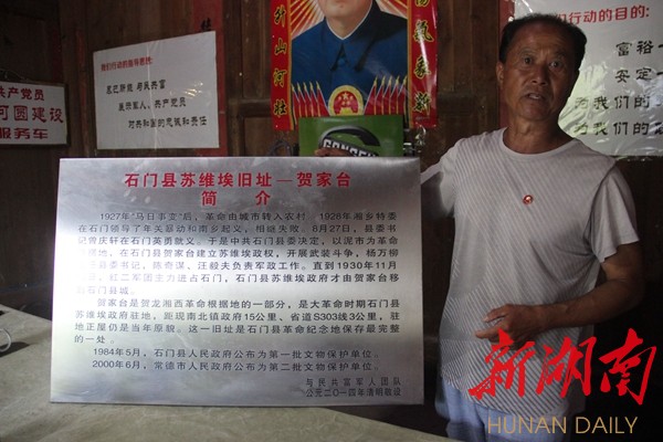(图为王新法介绍石门县苏维埃旧址贺家台。)