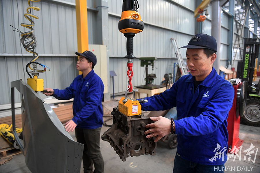 公司独立研发的助力机械臂,可轻松操控精准搬运超重物料。