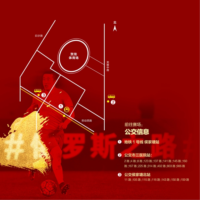 检票开始时间为17:30左右,组委会建议球迷不迟于18:30到达贺龙体育场,观赛球迷最好从体育场东门、南门入场。东门入口紧临芙蓉中路,南门入口紧临劳动西路。