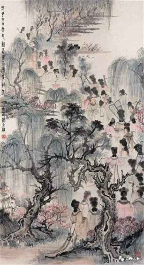 关于三月三的文学作品有很多,除了在上述提到的《诗经·秦风·溱洧》之外,最著名的当属王羲之的《兰亭集序》,这也是最出名的一次“曲水流觞”活动。