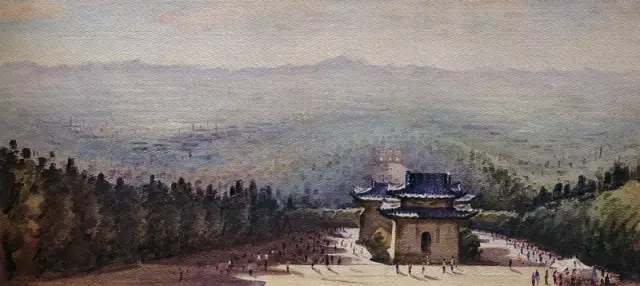 ▲登中山陵远眺 水彩画 27.4cmx60cm 殷保康 1981年