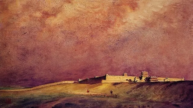 ▲雄关风云 水彩画 38cmx67cm 殷保康 1987年