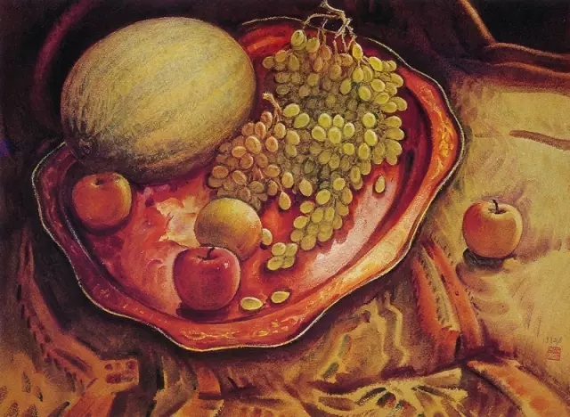 ▲新疆瓜果 水彩画 55cmx74.5cm 殷保康 1992年