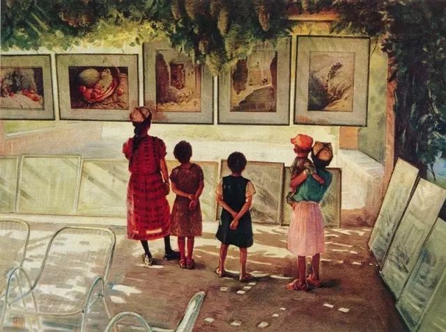▲架下画廊 水彩画 54.5cmx75cm 殷保康 1995年