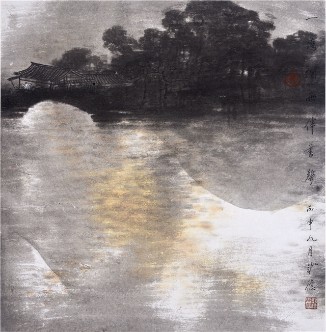 (《一湾烟雨伴书声》 纸本 68×68cm)