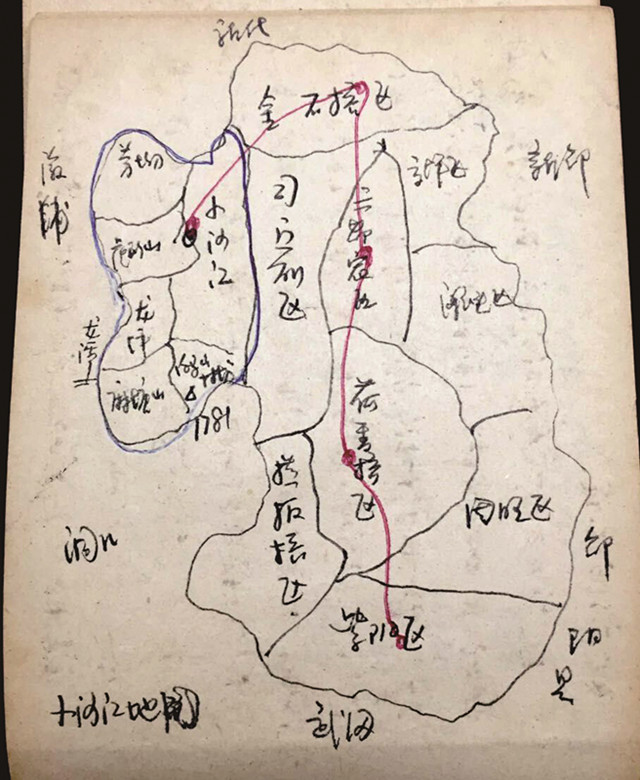 (1981年10月3日至6日,作为湖南日报驻邵阳记者的作者,徒步采访了隆回县沙江瑶寨,并自绘了这张地图。)
