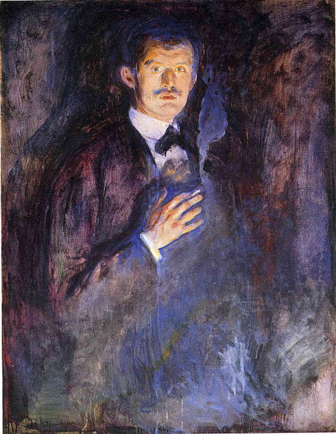 (【挪威】蒙克《拿烟斗的自画像》<1895年>)