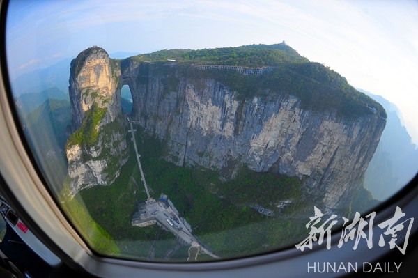 飞行线路以天门山山门为起点,直升机绕天门山360度飞行,涵盖天门山景区的11个景点。约10分钟的飞行,摆脱引力的束缚,直升机将人从平视和仰视中解脱出来,不仅可以更加直观的感受天门山的巍峨壮观,还可以从空中近距离感受天门洞开的神奇,挂壁栈道的惊险刺激。