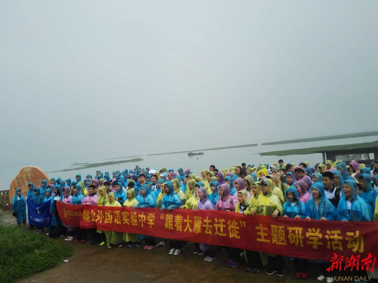 新湖南客户端4月8日讯(记者 徐典波)“已约年年为此会,故人不用赋招魂”。今天,长沙麓山外国语实验中学的师生和岳阳市江豚保护协会志愿者300多人,冒雨在湖南东洞庭湖国家级自然保护区举办了一场名为“跟着大雁去迁徙”的洞庭湖生态和湖湘文化体验分享会。麓山外国语实验中学负责人表示,该校将把“跟着大雁去迁徙”活动作为引导师生关注湖湘文化和生态的保留活动,年复一年地做下去。