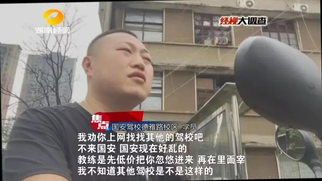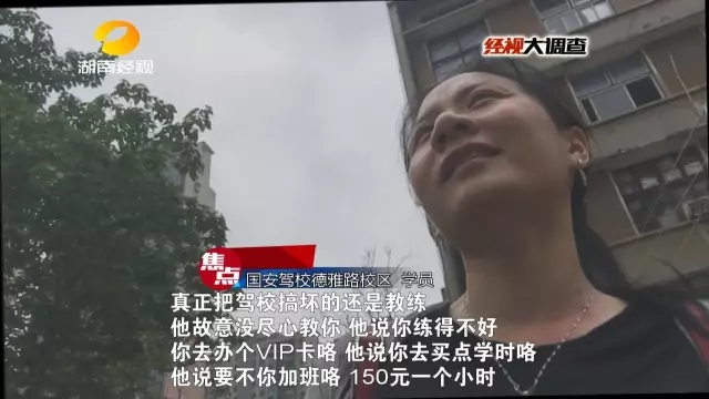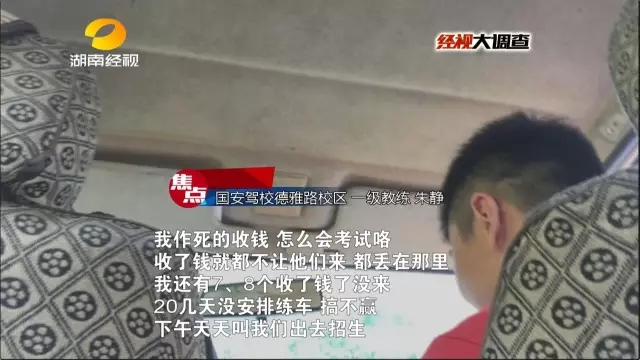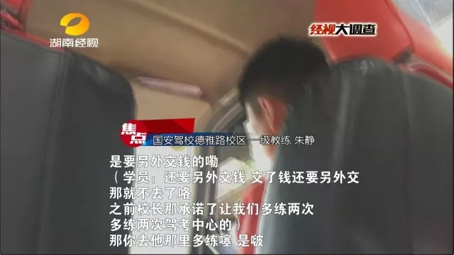 经视大调查曾重点关注了长沙“国安”驾校井湾子校区教练乱收费内幕,一包烟练车五分钟,“吃拿卡要”竟成了练车坪中的潜规则,而此种情况是否只存在于这一个校区呢?接下来,记者又对国安驾校的德雅路校区进行了调查,看看这里的教练们是如何巧立名目,为学员步步设套的。