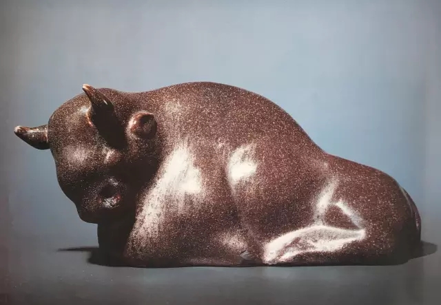周国桢以前所未有的胆识,一反过去过于注重颜色釉装饰的效果,而着力于追求内在生命的塑造。几乎抛弃用得烂熟的高温颜色釉,采用朴素无华的泥土甚至粗糙的匣钵料,以其朴素的本色来表现质朴的情感,扩放的豪气,“去尽浮华留真淳”,体现出一种深厚、纯真与原始的美。他的近作《牛脾气》就是用匣钵土信手捏成的,通体都带着手捏的痕迹和深浅不同的煤火熏烧的色素,显现出“天然去雕饰” 自然朴拙的灵趣。他的《落叶归根》、《黄河》、《枪打出头鸟》、《千斤顶》等大作,也都是以这样的手法制作的典型性作品,具有朴素博大的力的美。的,因为朴素就是美。