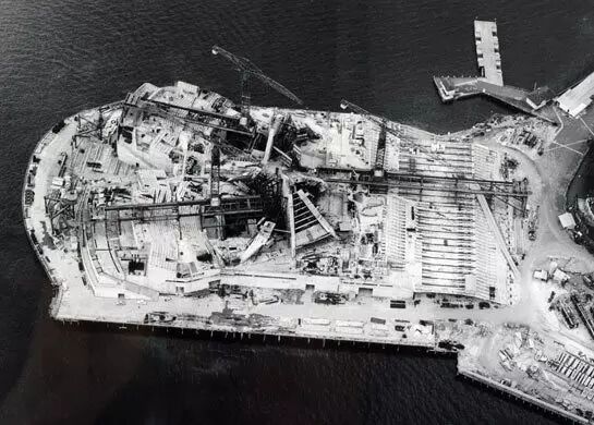 ▲悉尼歌剧院初搭建的钢结构-1962年