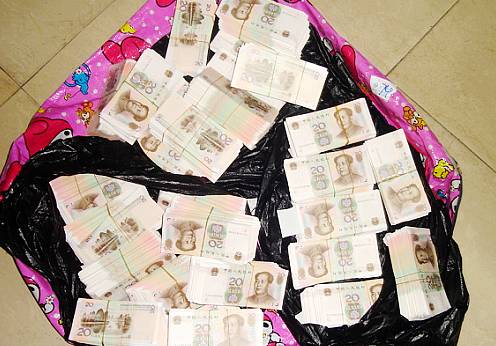民警上前查问,男子不仅遮遮掩掩还企图逃离现场。随后,民警在他们的背包中搜出大量20元小面额现金,这些现金都是假币,而且仿真程度非常高。
