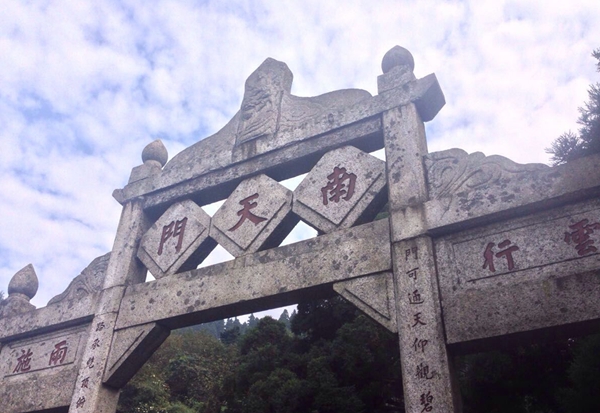 南天门牌坊是座落在祝融峰下的一座精致的石牌坊,又称“通天之门”,过了南天门牌坊,就越过凡间,进入九天之上的仙境了。它是一座高大的石砌牌坊,牌坊上书写着“南天门”三字。