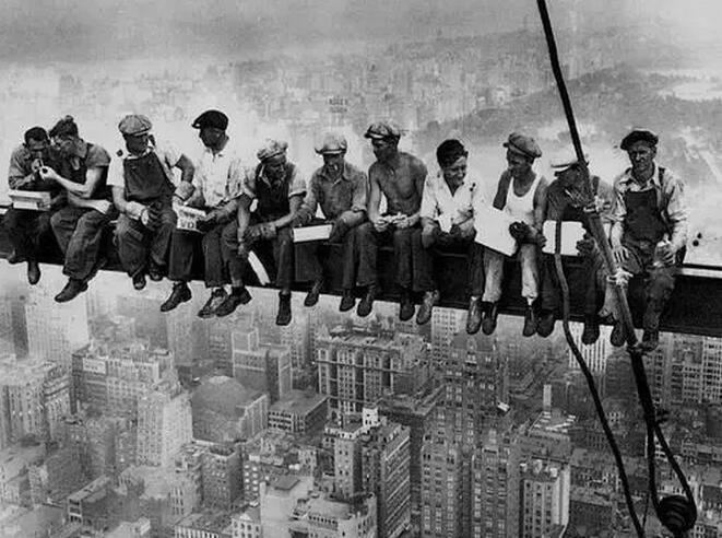 为了取得最好的角度拍照,他更站在悬吊在一千尺的高空中的篮子上。这个摄影项目持续了半年,海因同他的儿子一起拍摄了一千多张照片。