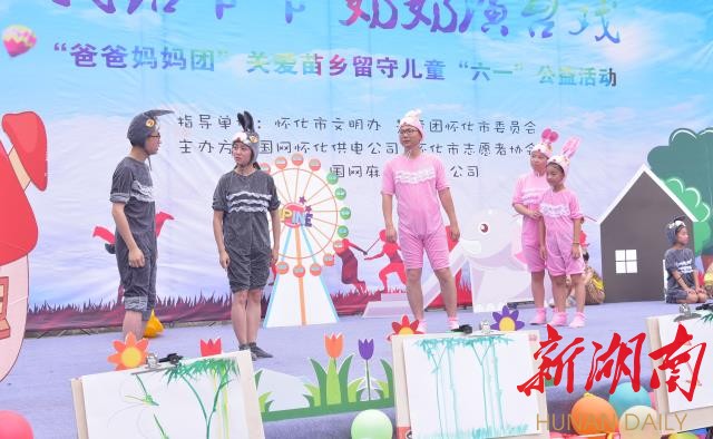 5月31日,麻阳苗族自治县江口墟镇石眼潭小学热闹了起来。一场主题为《我给爷爷奶奶演台戏》的文艺汇演在学校操场举行。防拐儿童剧《兔宝宝回家》获得阵阵掌声,表演者是该校的留守儿童和国网怀化供电公司“爱心爸爸妈妈团”的志愿者。