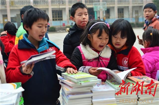 “爸爸妈妈团”捐赠的图书,留守儿童以前从未见过,非常新奇,好开心!