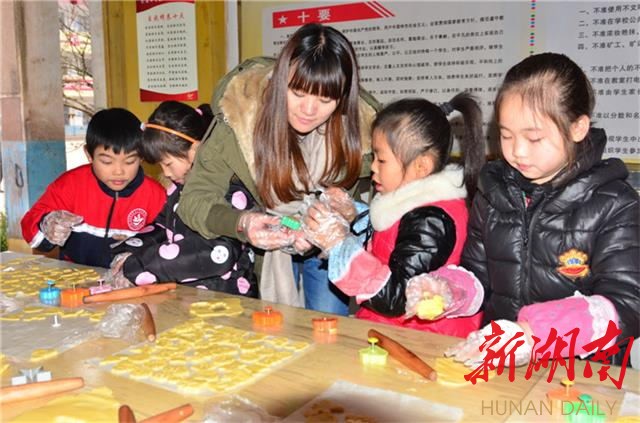 烘焙课,留守儿童跟着“爱心妈妈”自制蛋糕、有趣的图案、精致的点心。